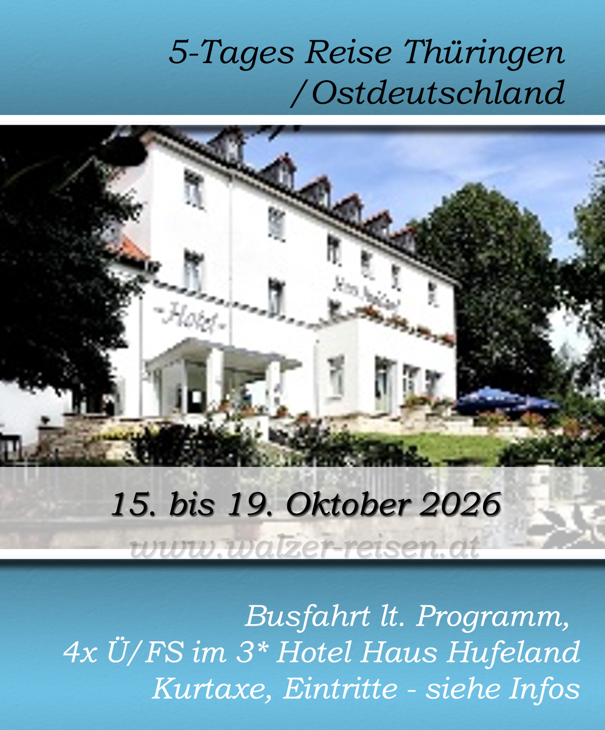 Preis pro Person im DZ Standard: € 802.- / EZ: € 879,-